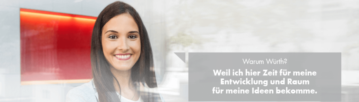 Würth ist führender Hersteller von Befestigungstechnik für die professionelle Anwendung. Als echte Macherinnen und Macher sind wir stets mit Leidenschaft bei der Sache. Hohe Eigenmotivation, große Gestaltungsfreiräume und eine starke Kollegialität zeichnen die Kultur in unserem Familienunternehmen Würth aus. Klingt das gut für Sie? Dann entdecken Sie jetzt Ihre Einstiegsmöglichkeiten und werden Sie Teil der Würth Familie. Es ist Zeit für eine neue Herausforderung.